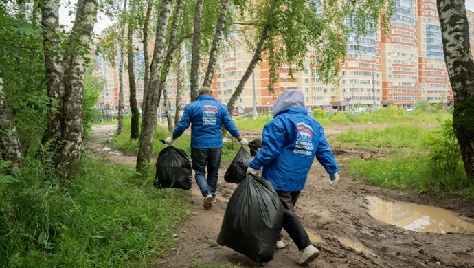 Birleşik Rusya aktivistleri Moskova Bölgesi Domodedovo’daki ormanlık alanı temizledi
