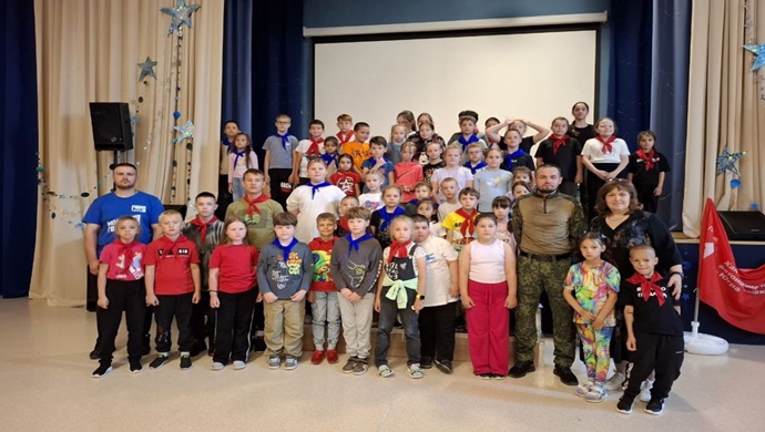 Askeri harekatların gazisi, SVO katılımcısı Sergey Şişkin, gençlere cepheden hikayeler anlatırken, çocuklardan gelen mektup, hediye ve resimlerin yer aldığı paketlerin, savunucuların mücadele ruhunu korumasına yardımcı olduğunu vurguladı.
