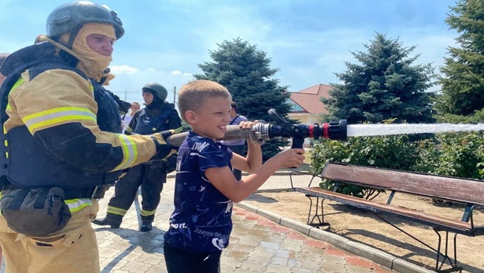Birleşik Rusya, Herson bölgesindeki çocuklara yangın güvenliği dersi verdi