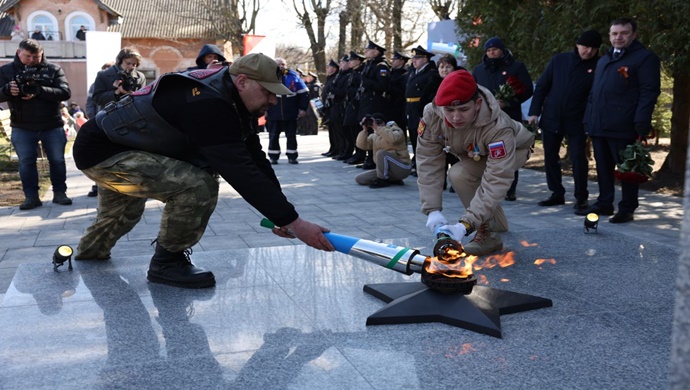Alevin bir parçacığı, Sivastopol’daki Sapun-Gora anıtından Kaliningrad bölgesine ulaştırıldı. Binlerce Sovyet askerinin gömülü olduğu Romanovo’daki yangın, gaz şebekesine bağlanma sayesinde yıl boyunca yanacak. Daha önce sadece önemli günlerde balonlarla aydınlatılıyordu.
