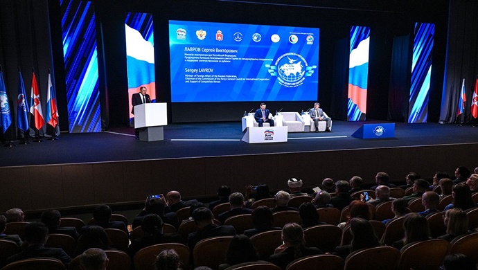 Birleşik Rusya Uluslararası İşbirliği Komisyonu Başkanı Dışişleri Bakanı Sergey Lavrov , asıl tehdidin, çok kutupluluğun nesnel süreçlerini engellemeye çalışan , bunu küresel egemenliklerine bir meydan okuma olarak algılayan ve sömürge dönemlerinden bu yana kendilerine siyaset, finans ve ticarette el koydukları avantajları savaşmadan bırakmak istemeyen Batı’daki güçlerden geldiğini belirtti.