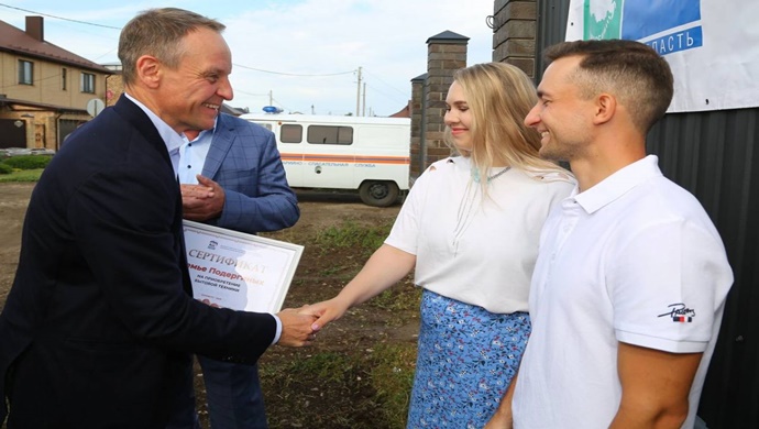 Aleksandr Sidyakin ayrıca Podergin ailesine ev aletleri sertifikasını takdim etti.