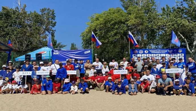 Mariupol’da Azak Denizi kıyısındaki bir kampta Genç Muhafızlar, çocuklar için çok yönlü bir plaj etkinliği düzenledi.