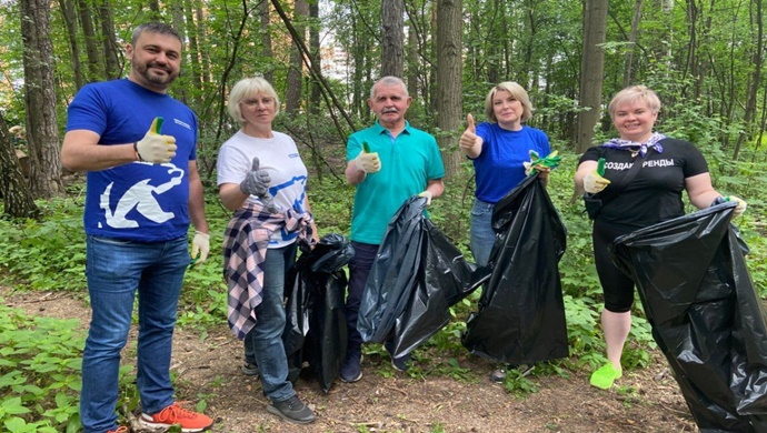 Çevre partisi “Birleşik Rusya” eylemine katılanlar Balaşiha’da iki hektar ormanı temizledi