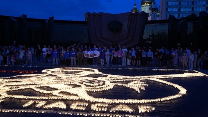 Habarovsk’ta Birleşik Rusya aktivistleri 10.000 mumdan Büyük Vatanseverlik Savaşı Kahramanı’nın portresini yaptı