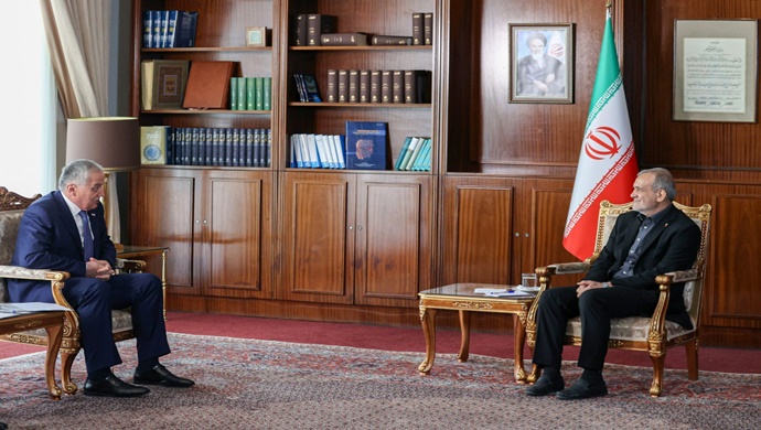 18 Mayıs 2025 tarihinde Tahran’da İran İslam Cumhuriyeti Cumhurbaşkanı Sayın Mesud Pezeshkian, İran’a çalışma ziyaretinde bulunan Tacikistan Cumhuriyeti Dışişleri Bakanı Sayın Sirojiddin Muhriddin’i kabul etti.