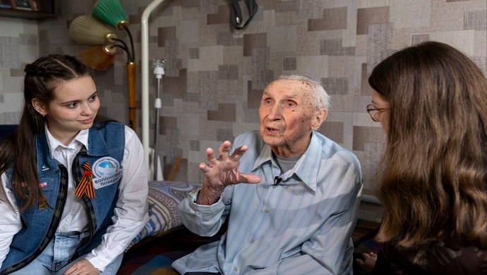 İşim’de gönüllüler 101 yaşındaki Tamara Mihaylovna Tarasyuk’u ziyarete geldi . 65. Ordu’nun bir parçası olarak Kalinin, Orta, Batı ve Ukrayna cephelerinde savaştı ve Kursk Savaşı’na katıldı. Tıbbi bir eğitmen ve tıbbi bir müfrezenin komutanıydı.